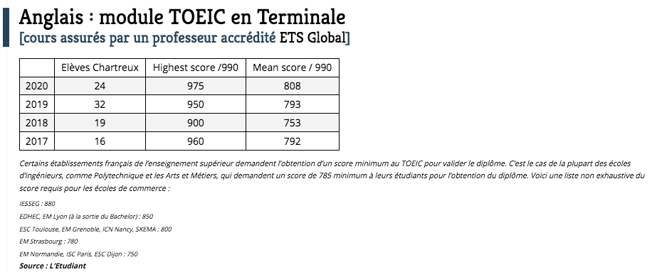Les élèves du module TOEIC nous ont habitué année après année à des scores très honorables. Mais le cru 2020 a vu apparaître le highest score enregistré depuis 2017. Et le mean score le plus élevé !