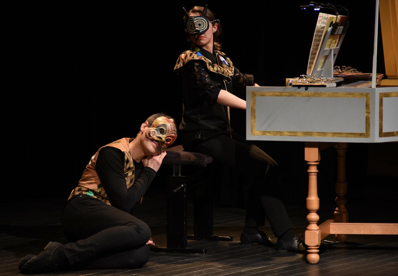 Pour cette pièce, j’ai voulu avant tout mettre en valeur la musique, les articulations si précises de Marie Van Rhijn, jouer avec ses élans et son interprétation des œuvres d’Elisabeth Jacquet de la Guerre. En est ressorti un jeu chorégraphique : jeu de rôles, jeu de masques, tantôt plus sombre, tantôt burlesque. La danse va à l’essentiel, le mouvement se fait parfois discret, sans ostentation, il suit les humeurs de Madame Jacquet de la Guerre. »