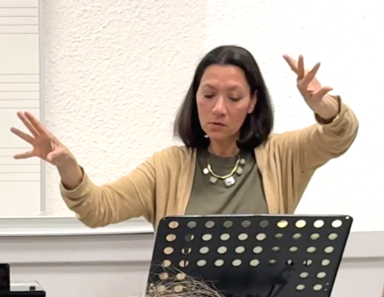Frédérique LOMBA, pianiste, chef de chœur, chef d'orchestre, assure le travail avec ce chœur constitué de jeunes filles de l'Institution. La rencontre et le soutien de Graziella Contrato, cheffe d'orchestre suisse, et les conseils de la cheffe Claire Gibaut, l'amènent à la direction d'orchestre. Elle obtient un DEM (diplôme d'études musicales) de cette discipline dans la classe de Philippe Cambreling. Frédérique LOMBA est présente sur scène comme pianiste soliste (elle a interprété dernièrement les Variations Goldberg), elle aime créer du lien entre littérature et musique, et elle met aussi son expérience de direction musicale au service des musiciens et chanteurs amateurs. |