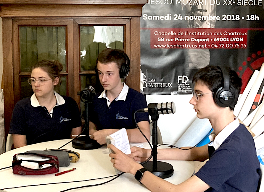 Depuis le printemps 2023, un groupe de 4 collégiens, Pauline, Niels, Arthus et Paul, accompagnée par une professionnelle de la radio, Mme Raphaëlle Mantoux et par M. David Camus, directeur du Fonds de dotation sont les apprentis journalistes de Micro Chartreux.